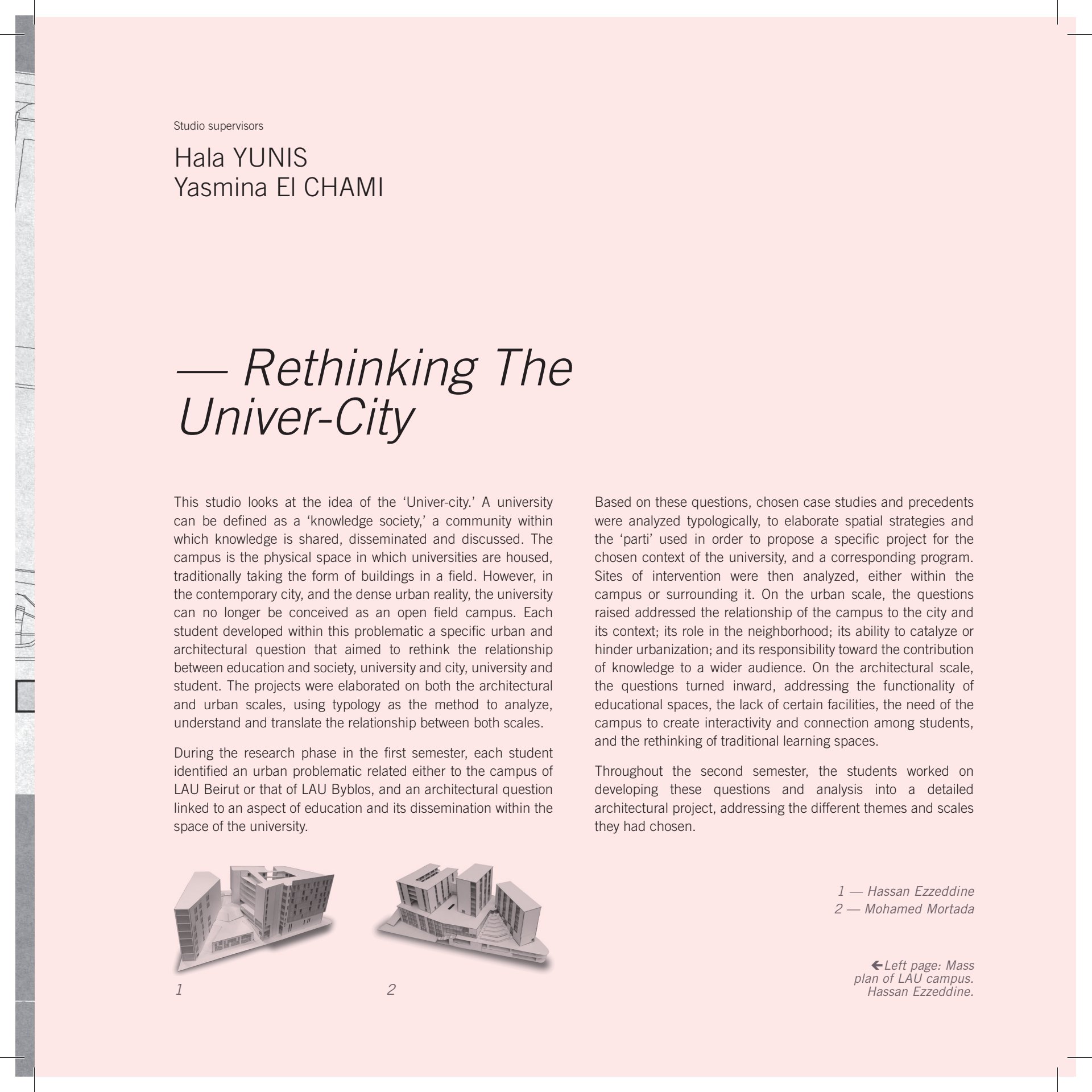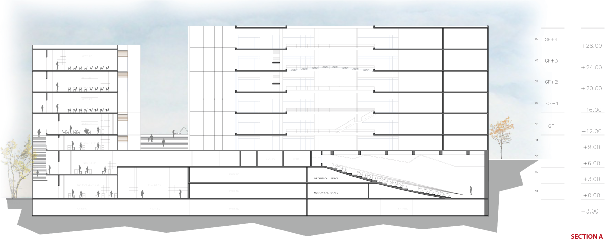 This project will look at the idea of the ‘Univer-city’. A University can be defined as a ‘knowledge society’, a community within which knowledge is shared, disseminated & discussed. A development within this problematic of a specific urban and architectural question, that aims to rethink the relationship between education and society, university and city, university and student.