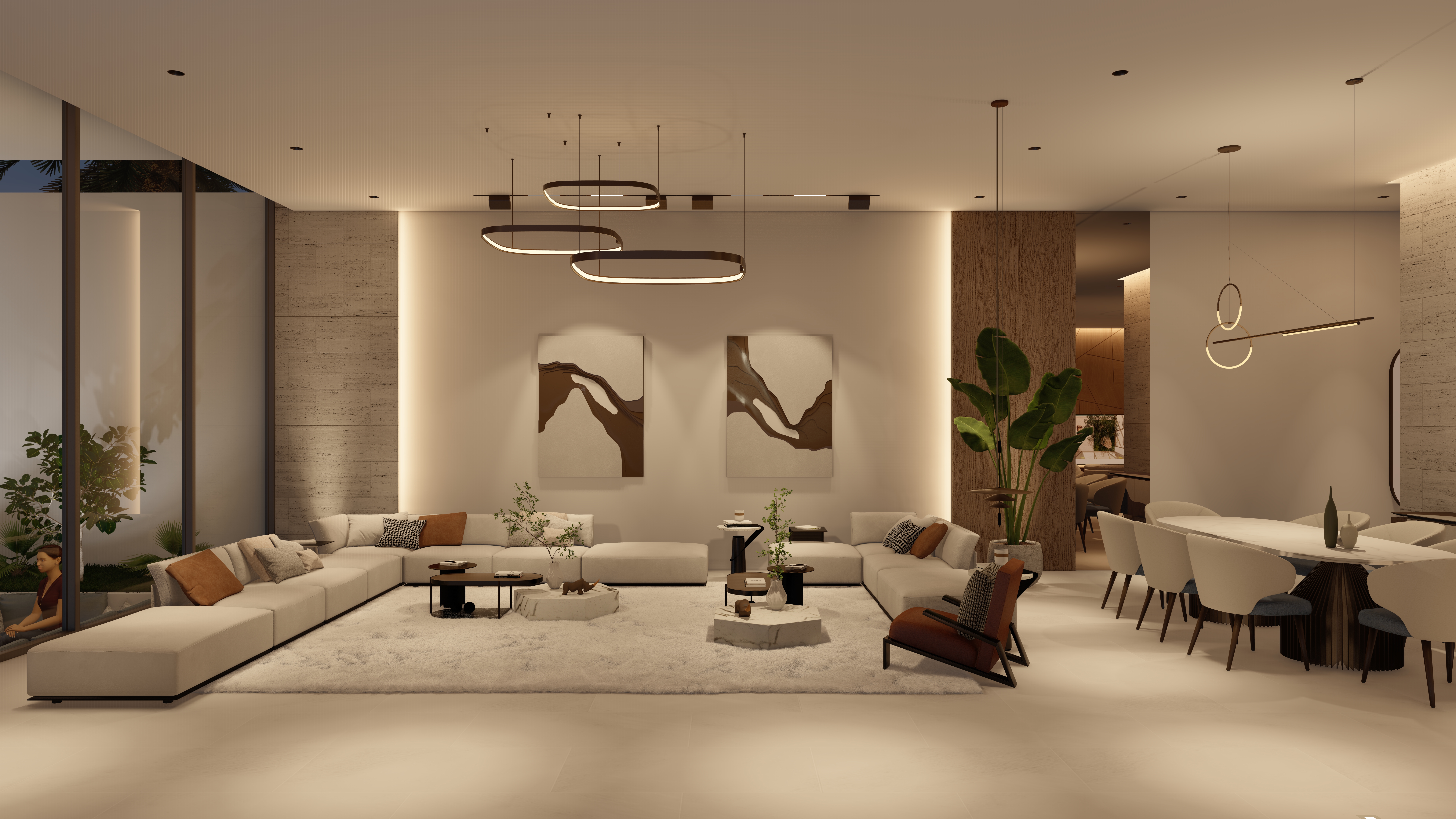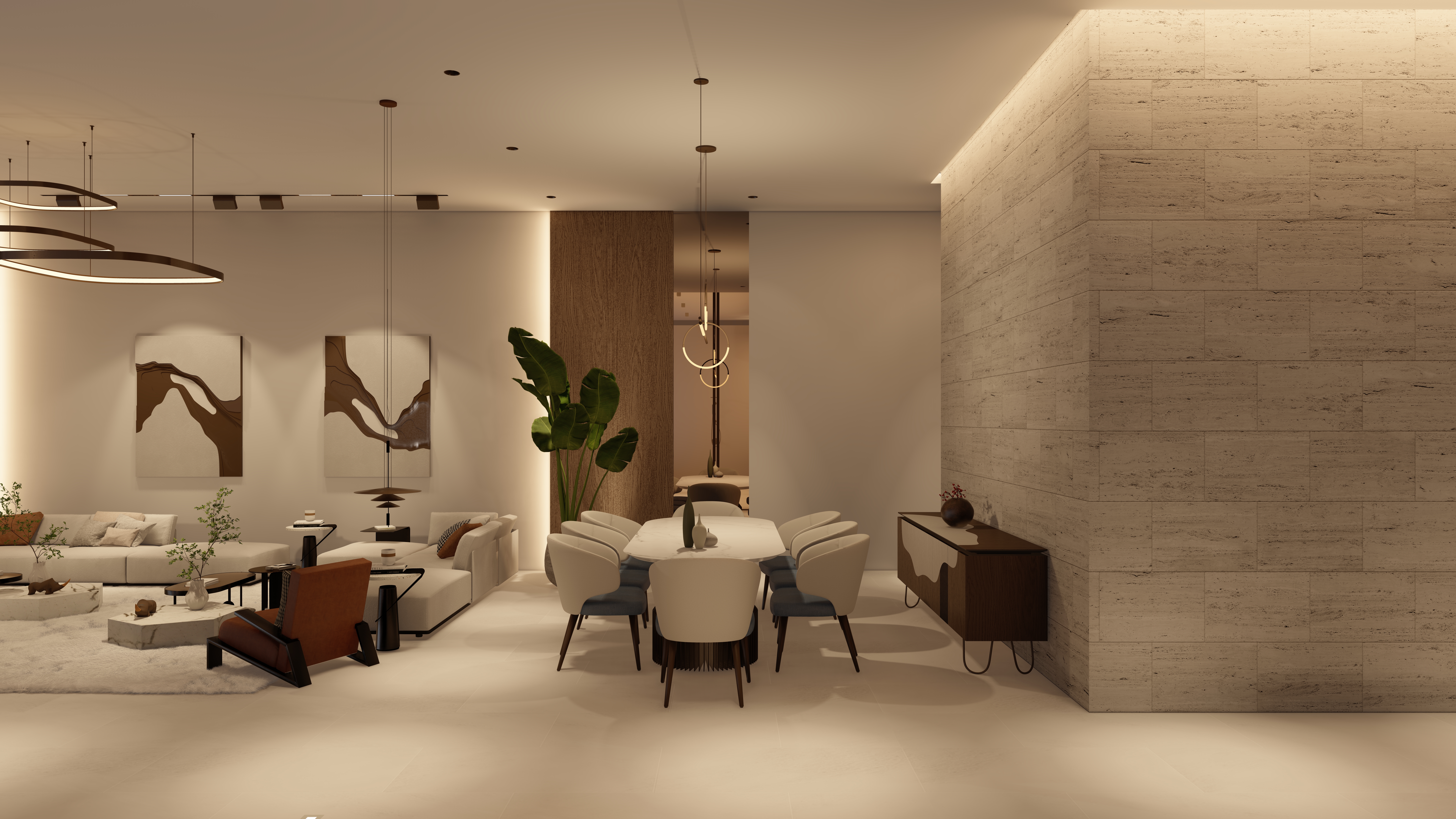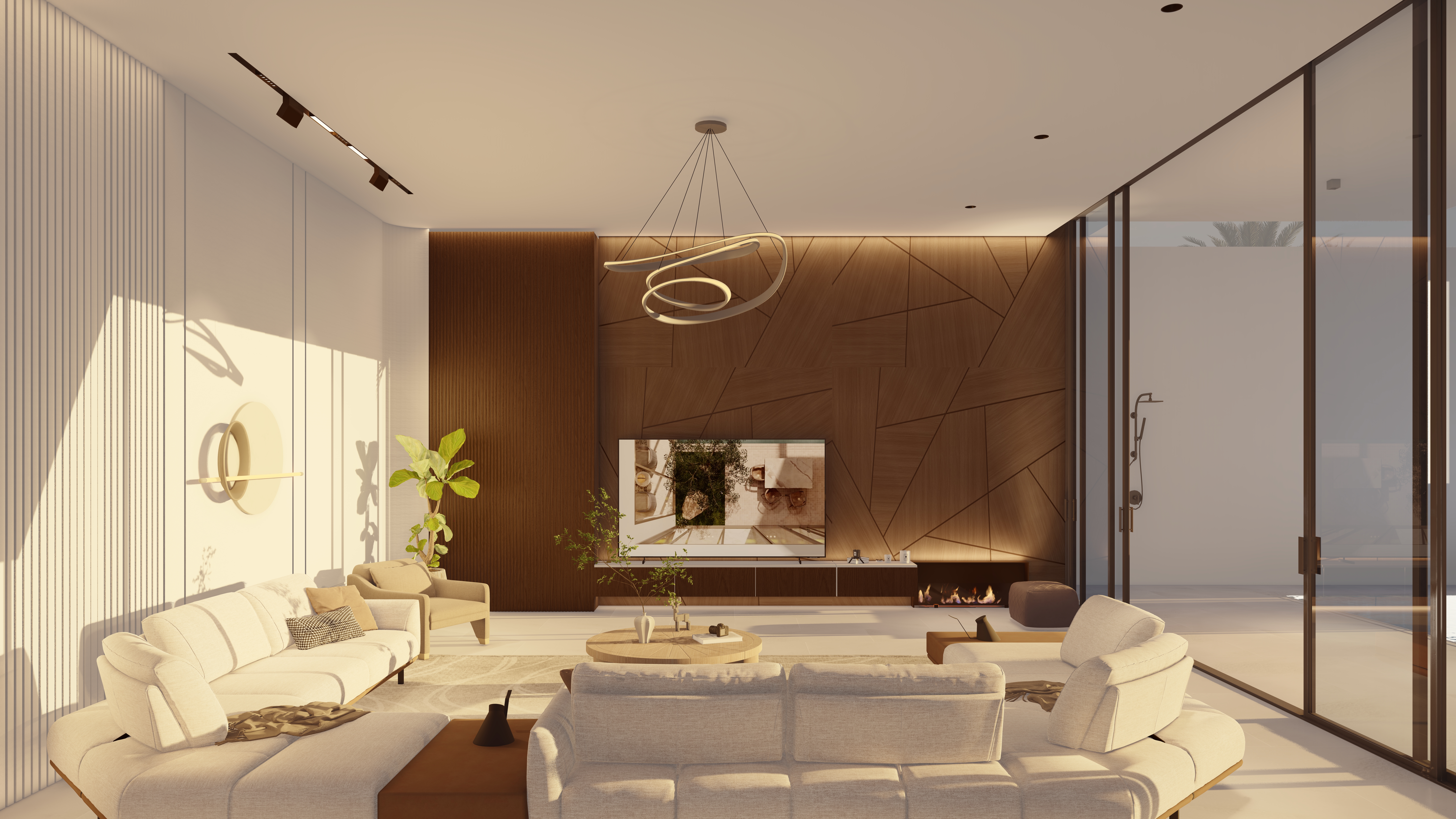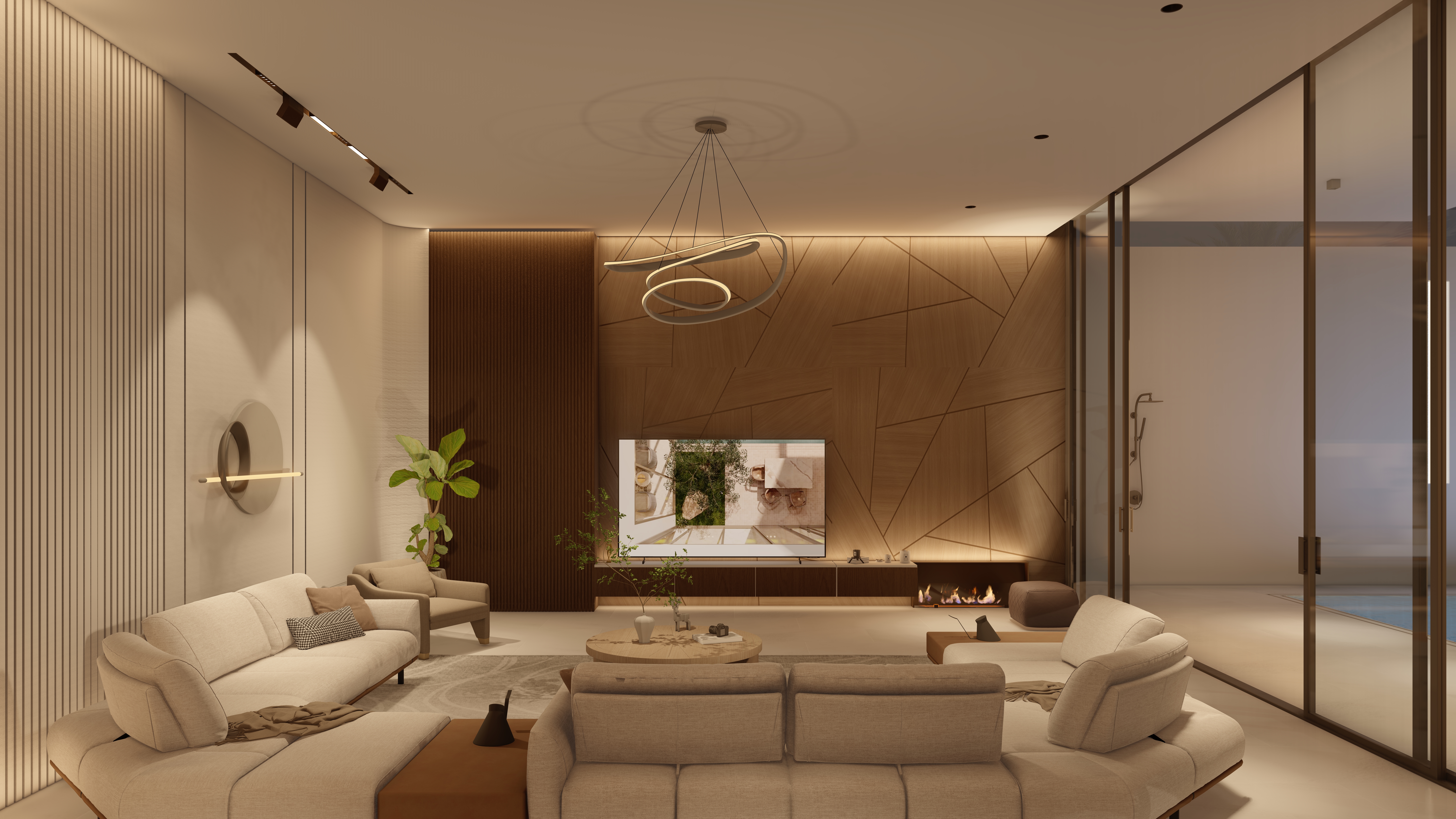Located 100 km from the city center, this chalet is envisioned as a calm retreat that blurs the boundaries between built form and nature. The design emphasizes seamless integration of architecture and landscape, with expansive glazing, open courtyards, and fluid circulation that draw the sea breeze and natural light deep into the interiors. The entrance opens directly to a framed view of the sea, offering an immediate connection between arrival and the horizon beyond.
