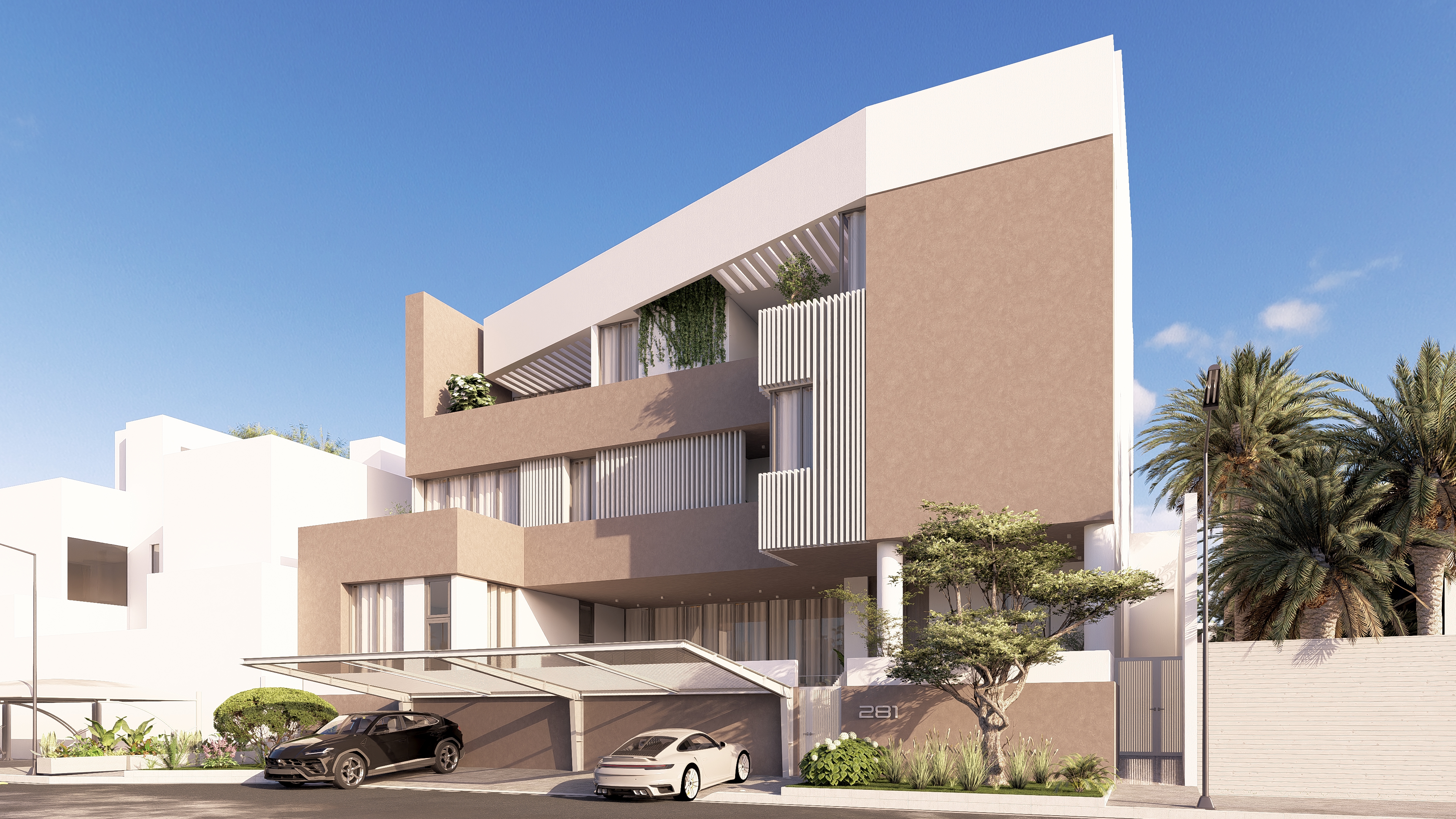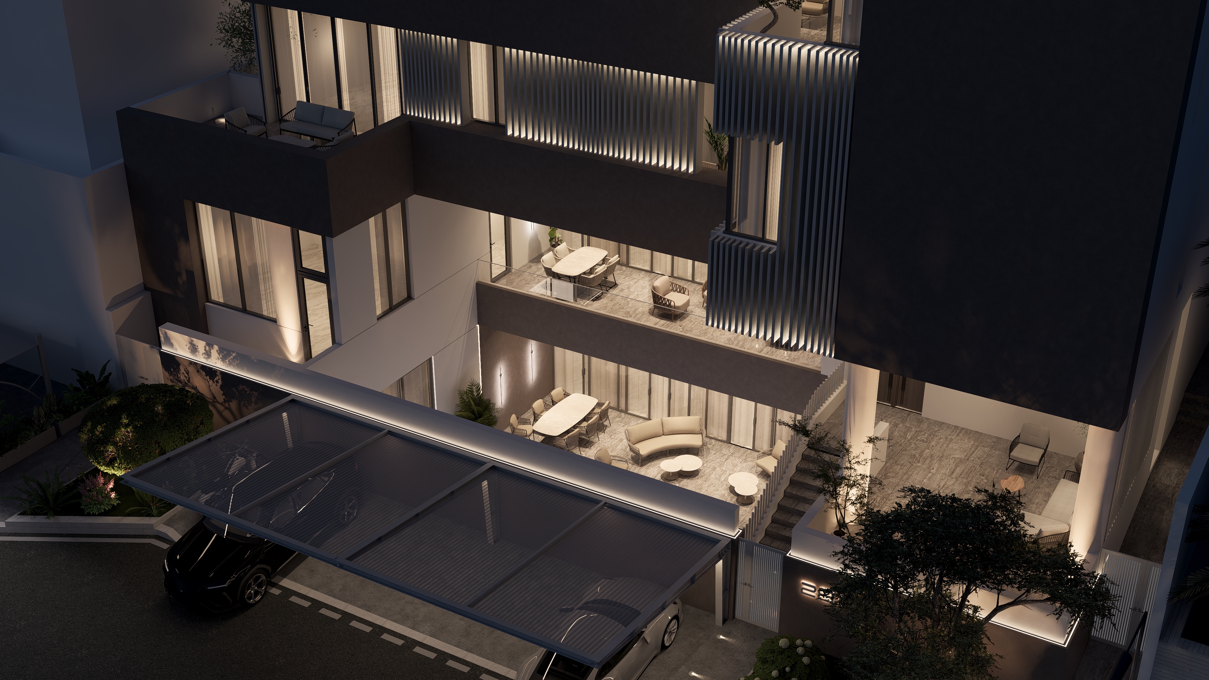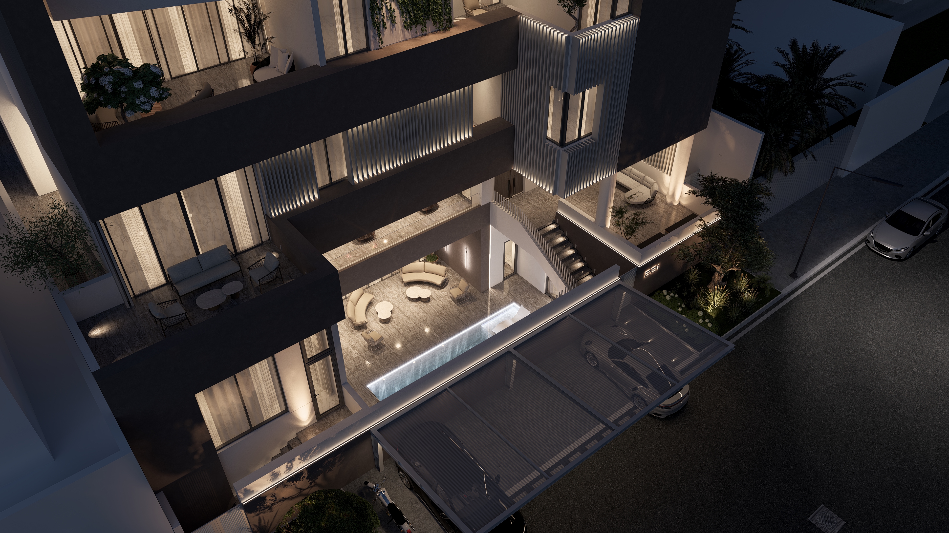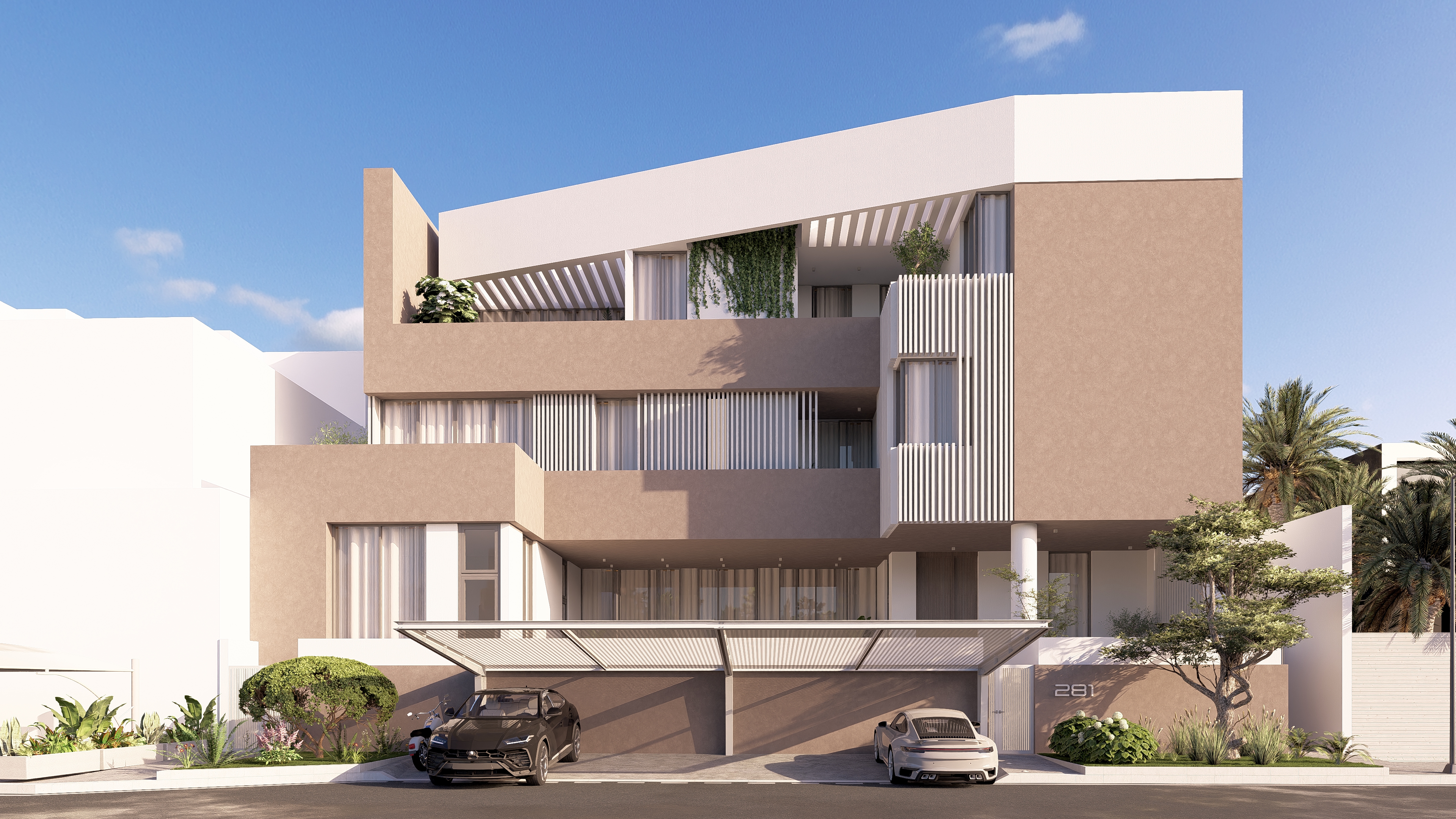 Located on a generous 500 sqm corner plot in the prestigious residential district of Khaldiya, Kuwait, this four-storey family home has been carefully designed to respect traditional Kuwaiti values of privacy, hospitality, and multi-generational living while embracing a clean, modern architectural language.