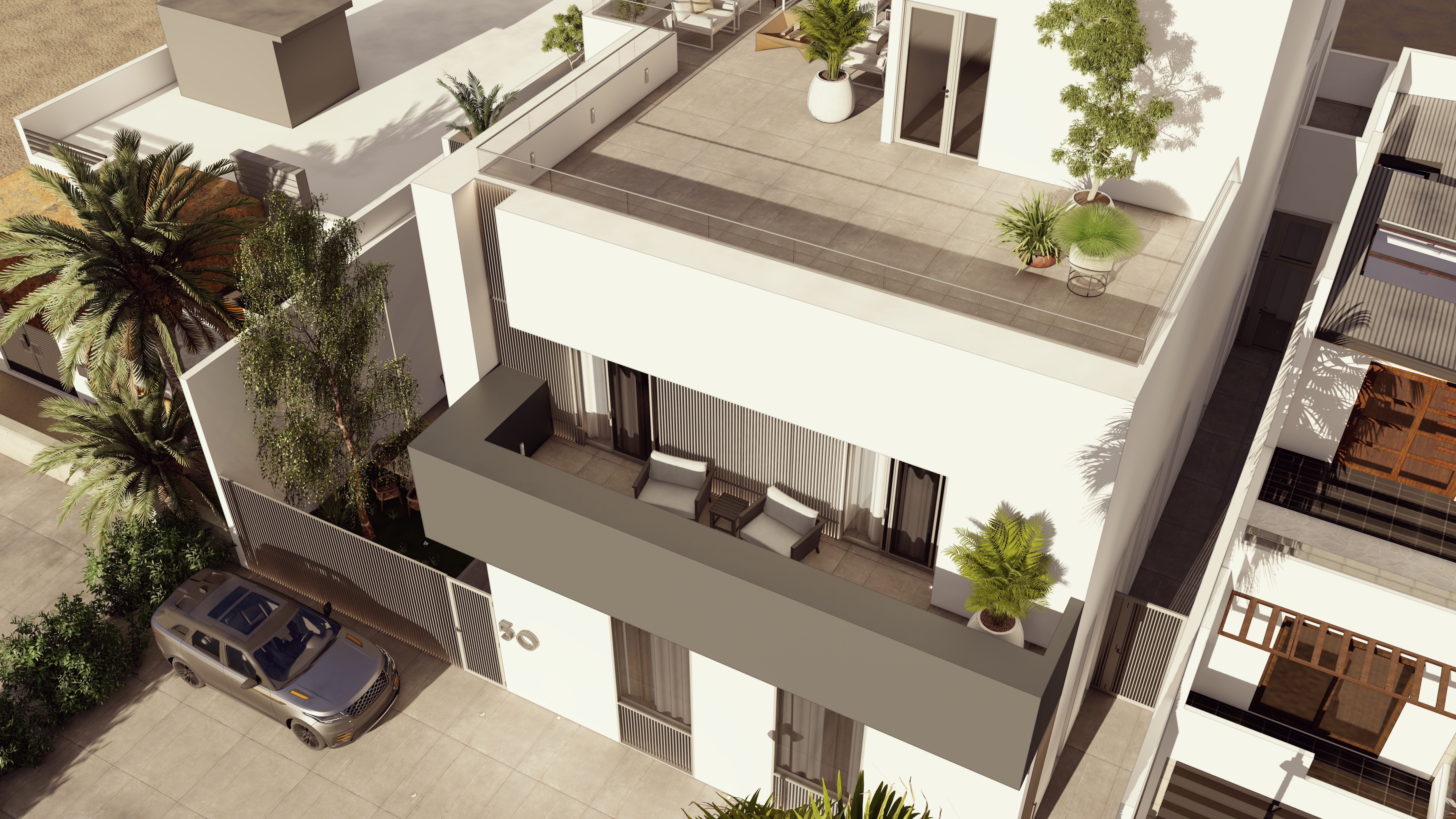 The second floor is a retreat for the parents. It features a spacious master suite, walk-in closets, and a luxurious bathroom. The highlight of this level is the expansive terrace, designed for relaxation, outdoor gatherings, and panoramic views, offering a sense of calm above the city’s rhythm.