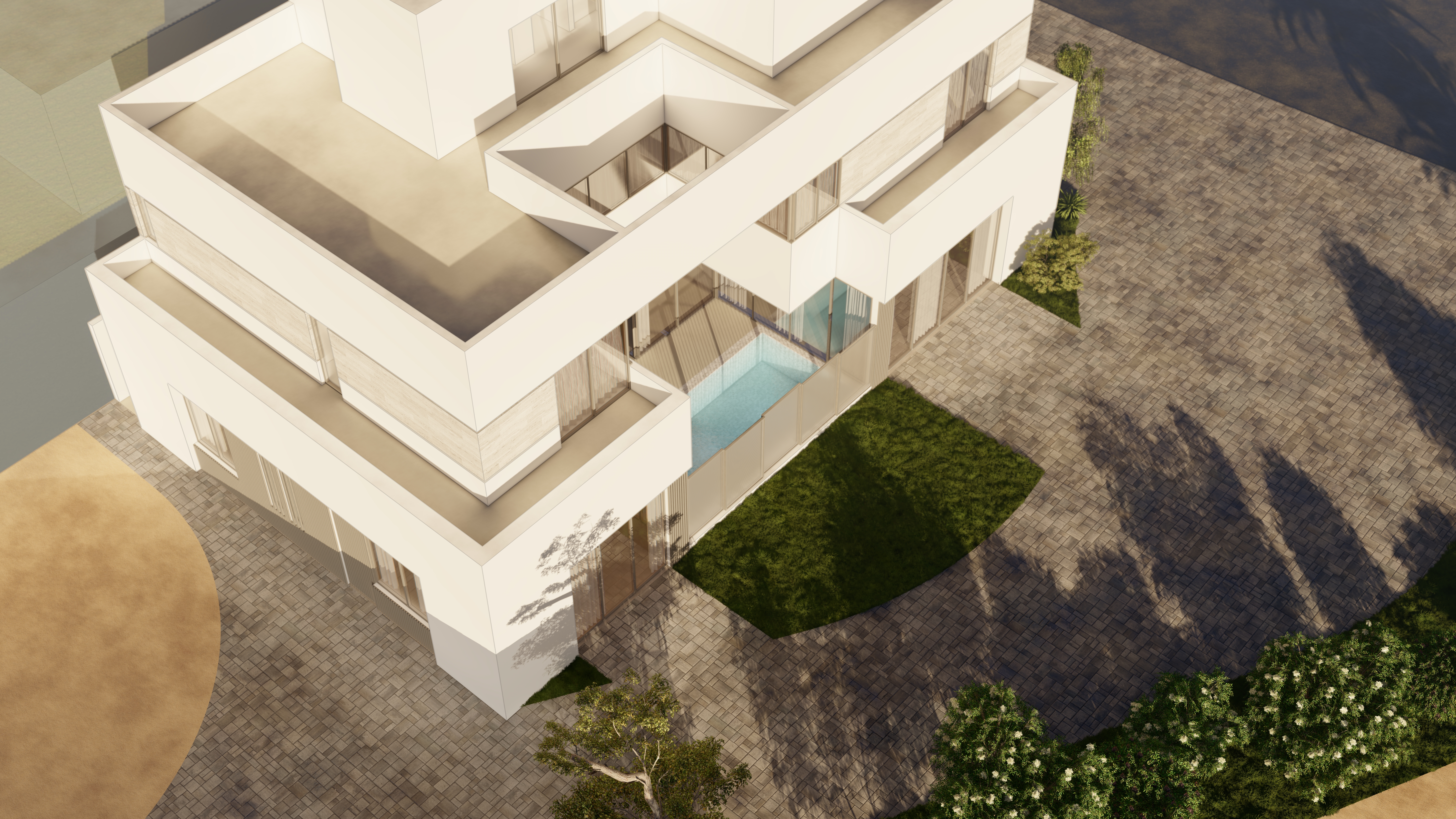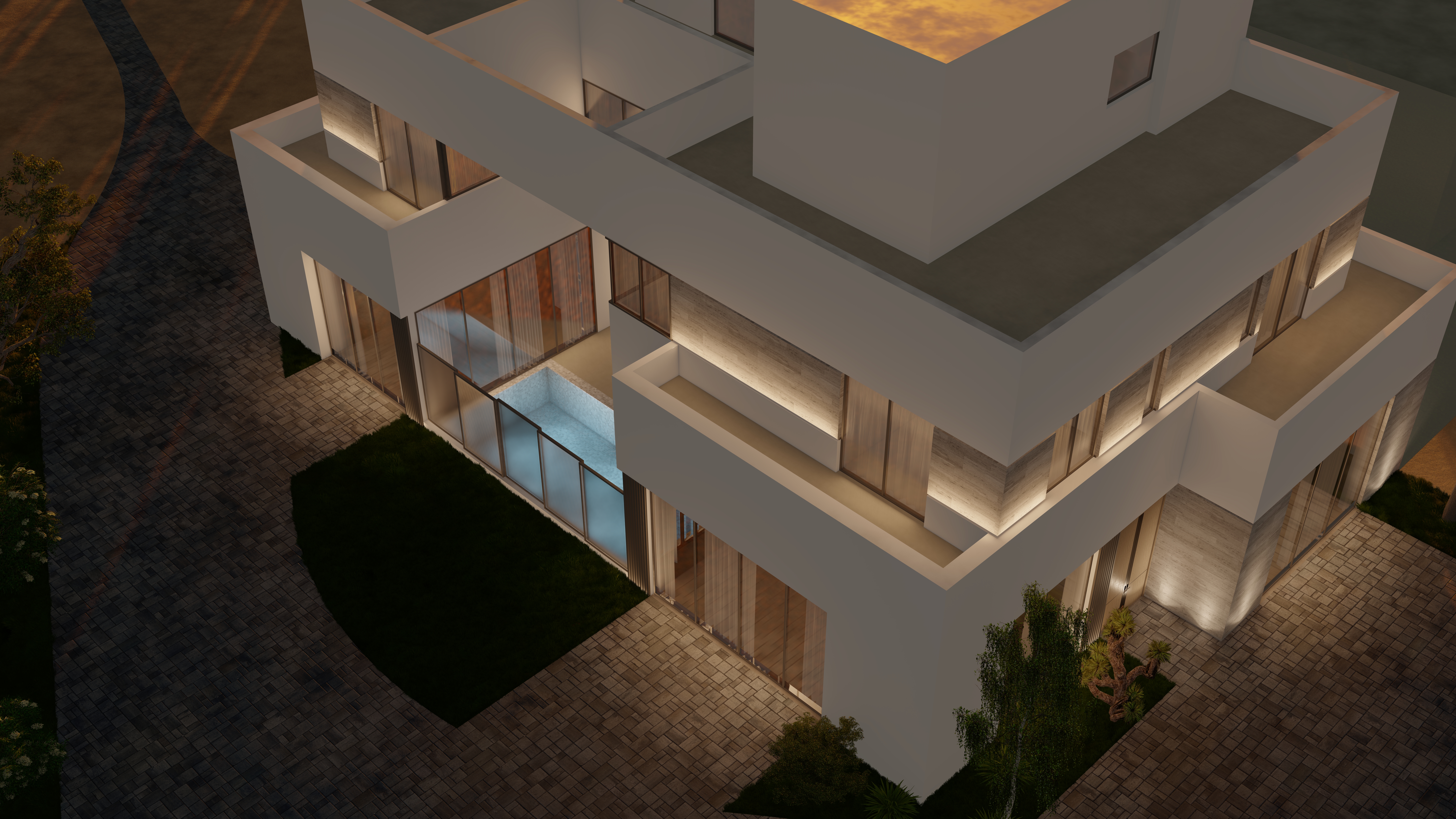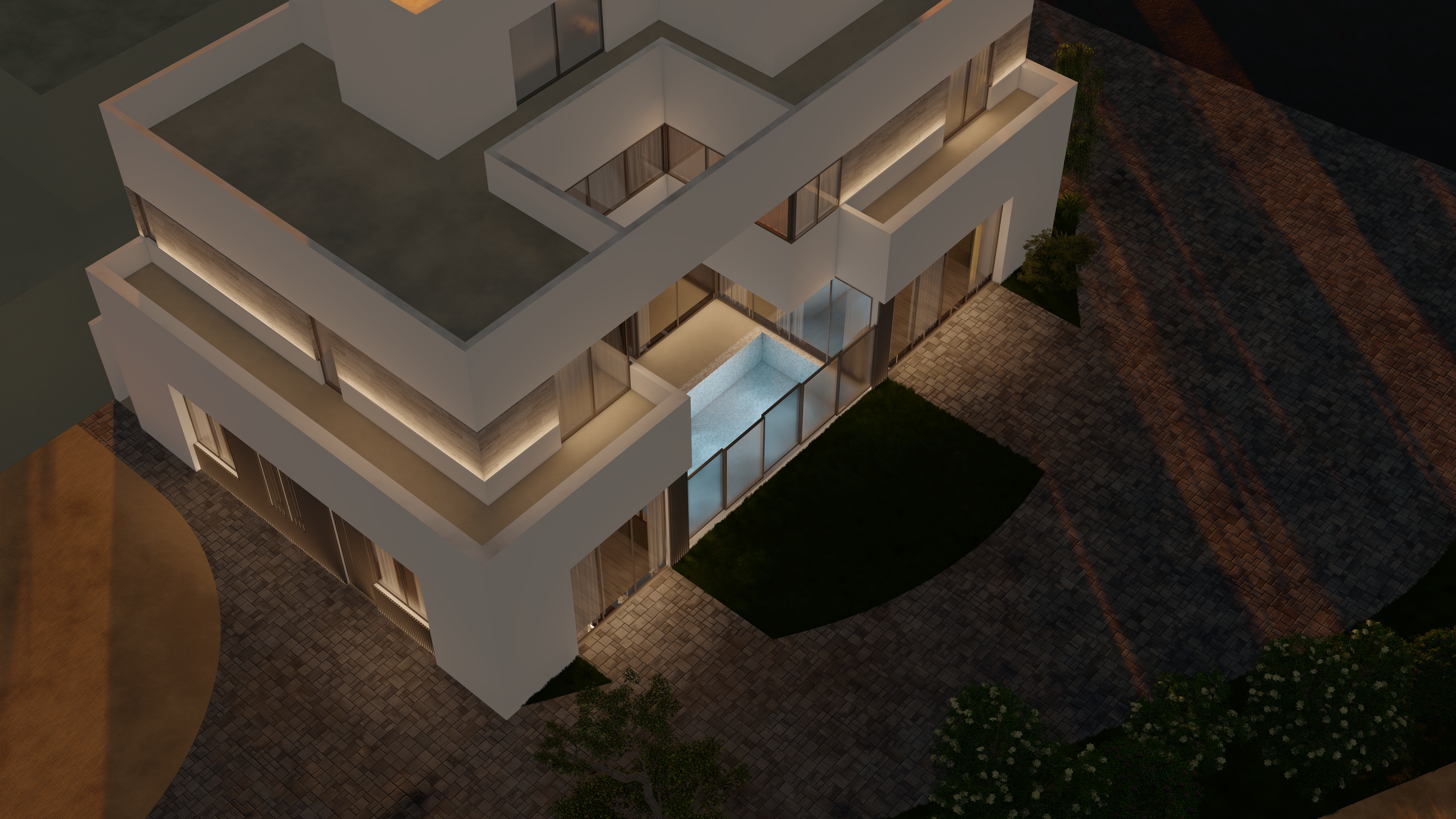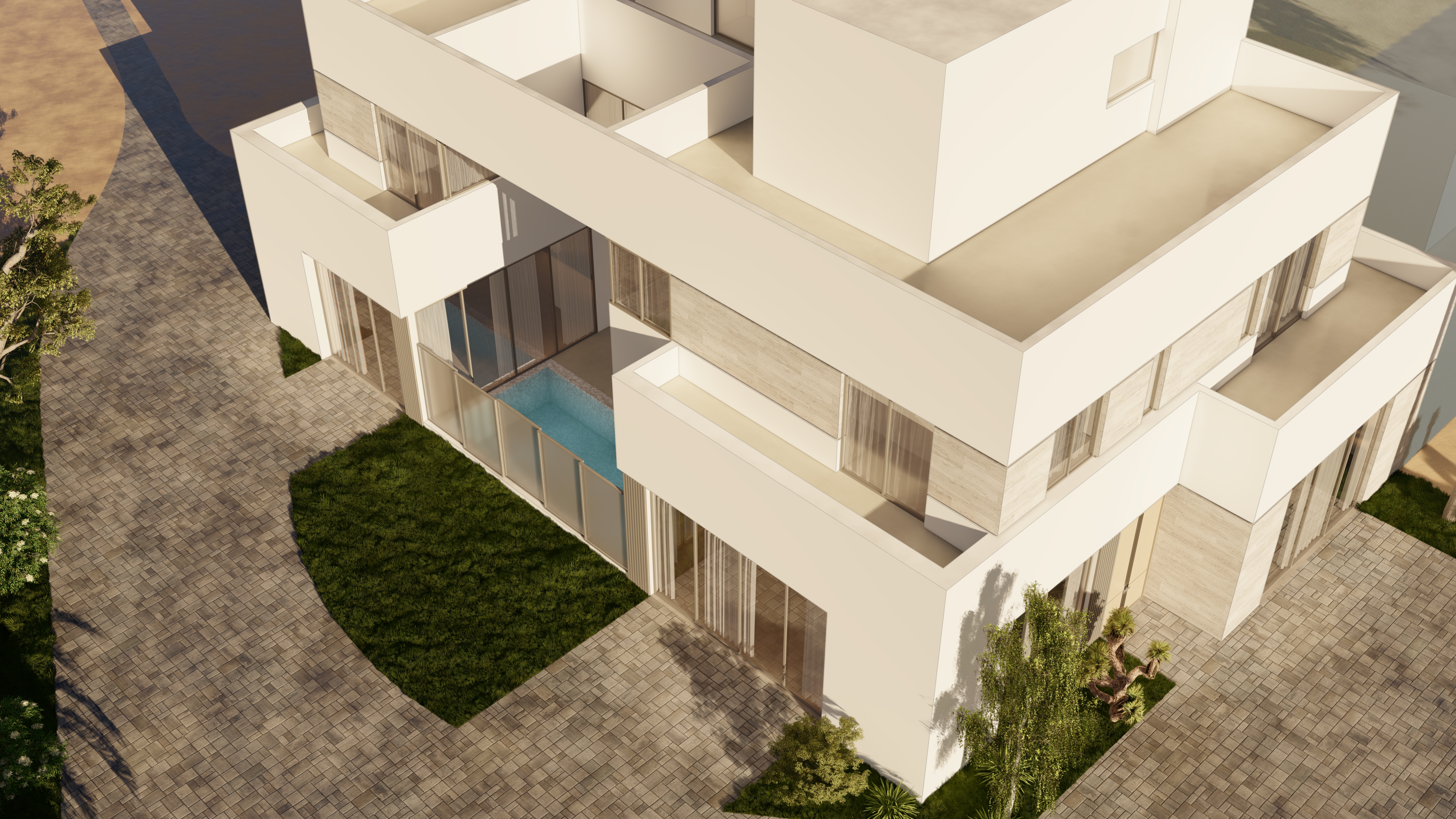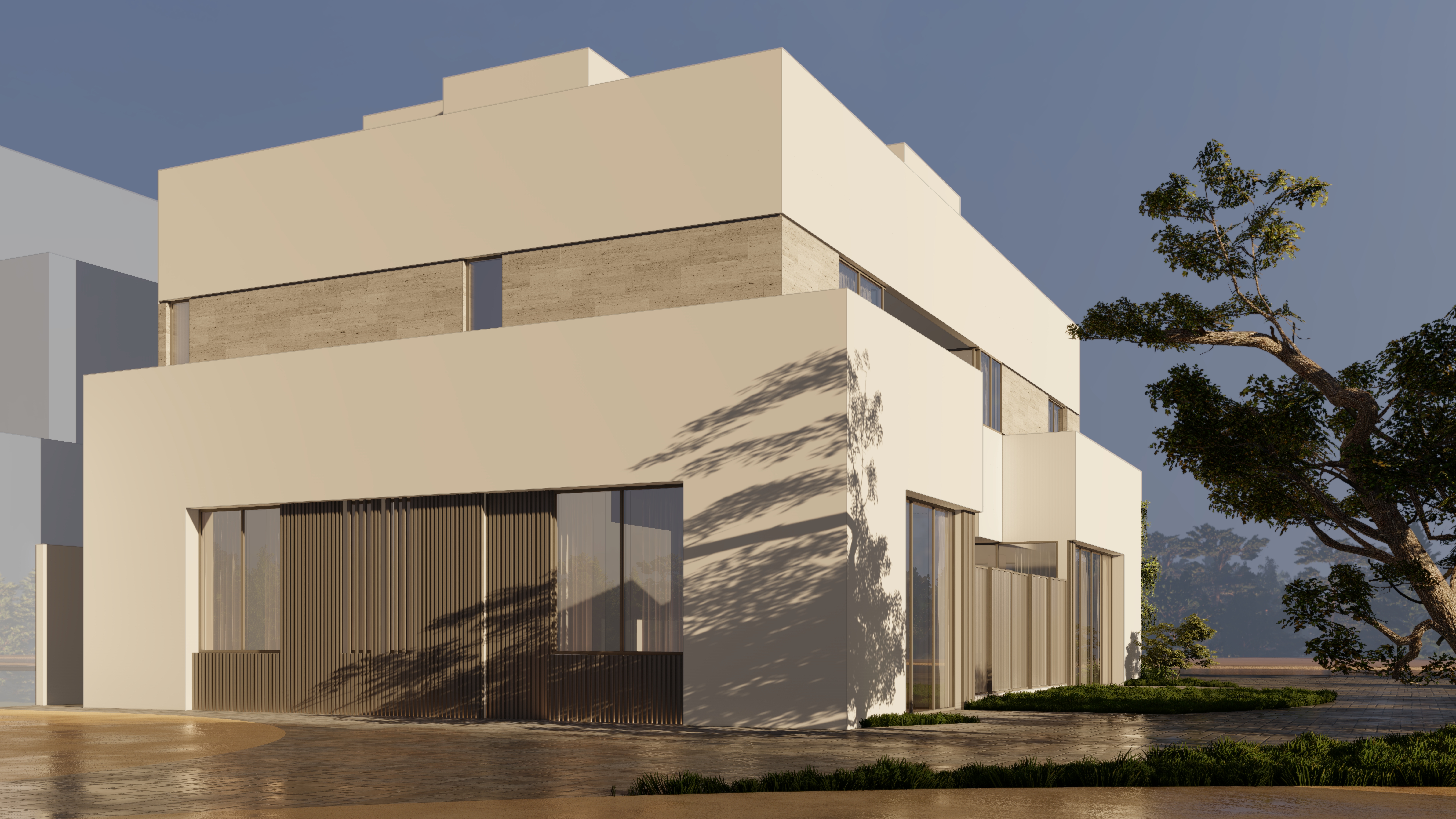This residential villa sits on a 400 sqm plot in a prime location, strategically placed at the intersection of three roads with only one adjoining neighbor. The site benefits from three open facades and generous setbacks, allowing for abundant natural light, ventilation, and seamless integration with landscaped surroundings. The three level house is designed to balance privacy, openness, and functionality.